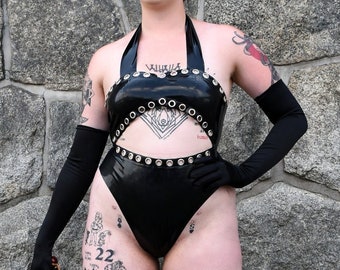 Women Latex Leather High Cut Thong Leotard Bodysuit Onepiece Swimwear Swimsuits Ebg