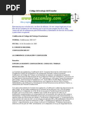 Codigo Del Trabajo Del Ecuador Pdf Salario Codificacion Ley
